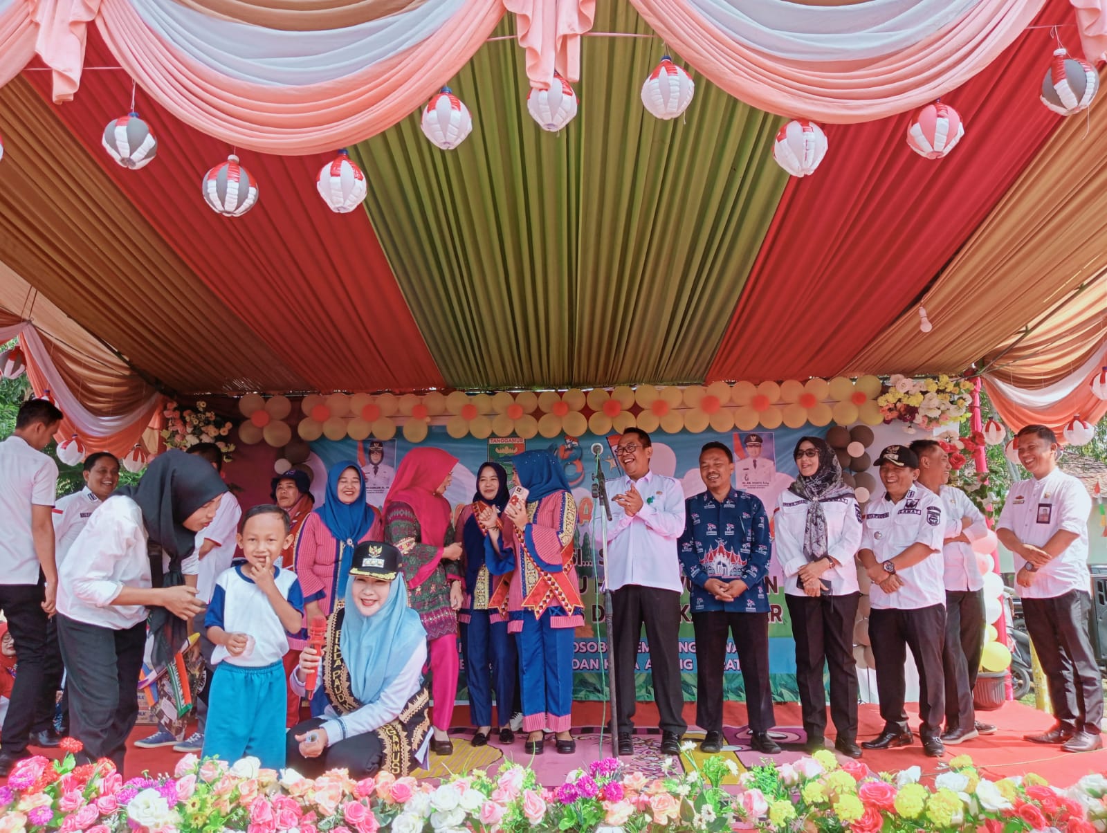 SEMAKA — Bupati Tanggamus Hj Dewi Handajani Menghadiri Hari Ulang Tahun (HUT) Himpaudi Ke-18 Dan Gebyar Paud Dengan Tema” Satu Visi Satu Aksi Satu Dedikasi Organisasi Kuat Guru Hebat Wujudkan Generasi Emas Cerdas Dan Berkarekter, di Lapangan Pekon Suka Raja Kecamatan Semaka. Rabu 30/8/2023.