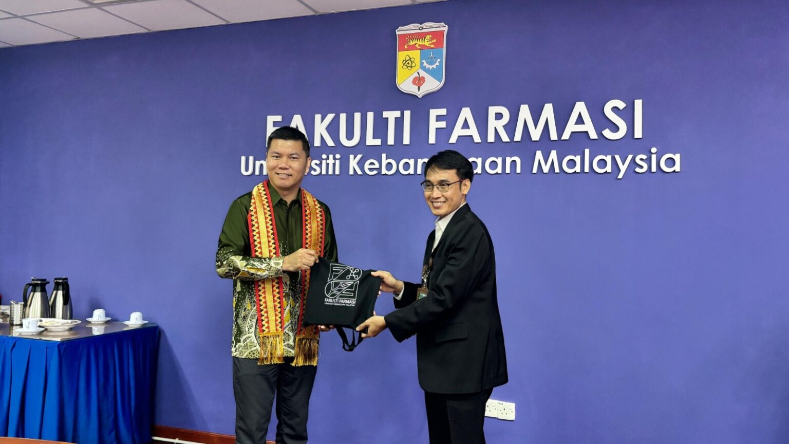 Dekan Fakulti Farmasi UKM, Prof. Dr. Mohd Makmor Bakry, menyambut baik kunjungan delegasi FK Unila. Ia didampingi jajaran pimpinan fakultas, antara lain Prof. Dr. Haliza binti Katas (Deputy Dean Research & Innovation), Associate Prof. Dr. Mohd Hanif bin Zulfakar (Deputy Dean Industry & Community Partnership), Dr. Chandini Menon a/p Premakumar (Coordinator for International Relations), Dr. Nor Asyikin binti Mohd Tahir (Coordinator for Pharmacy Practice Discipline), ChM. Hazni Falina binti Mohamad (Coordinator for Laboratory Services Unit), dan Thohir bin Hasim (Ketua Pentadbiran Fakulti Farmasi).