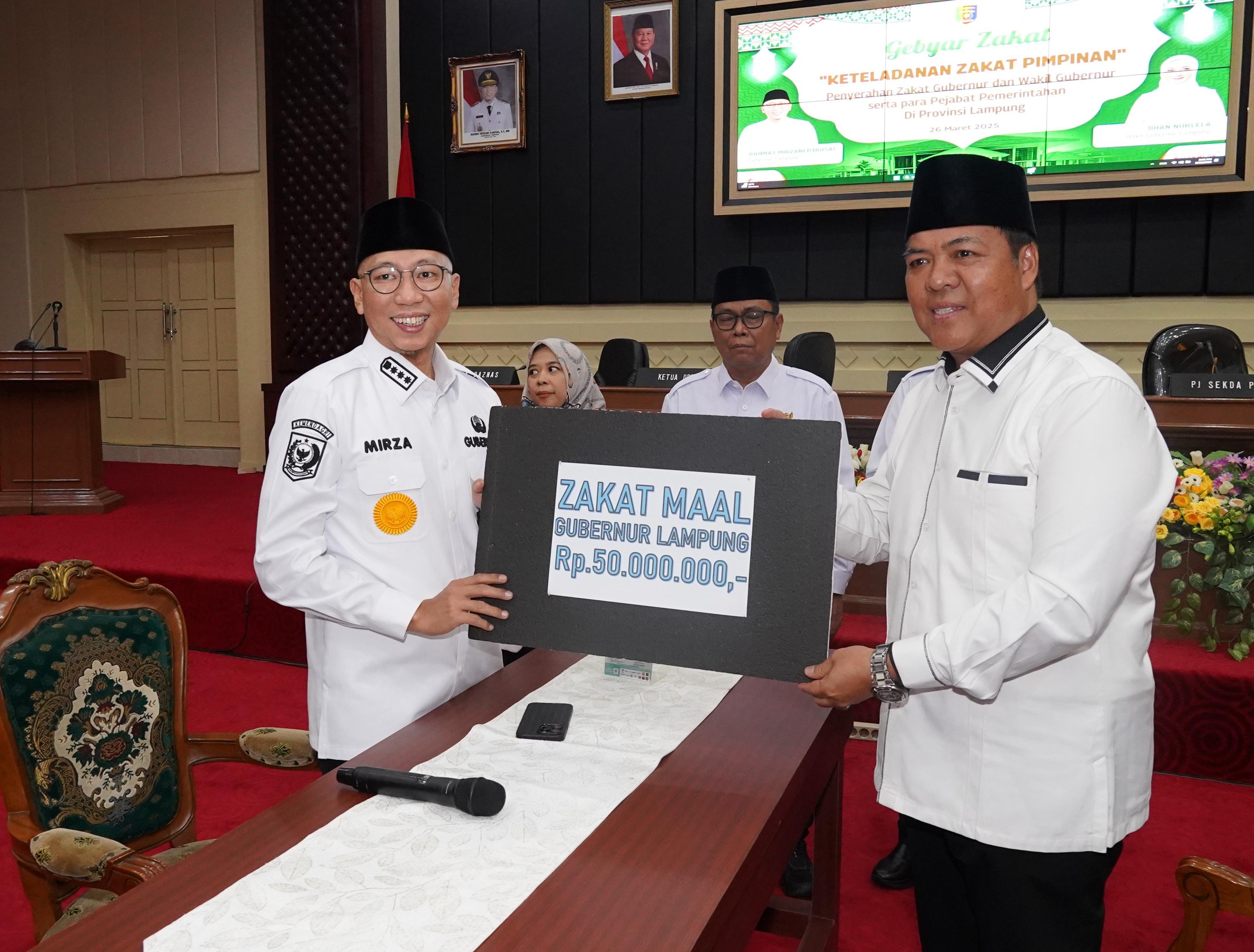 Pada kesempatan tersebut, selain menyerahkan Zakat Fitrah, Gubernur Mirza juga menyerahkan Zakat Mal sebesar Rp.50 juta kepada Baznas Lampung.