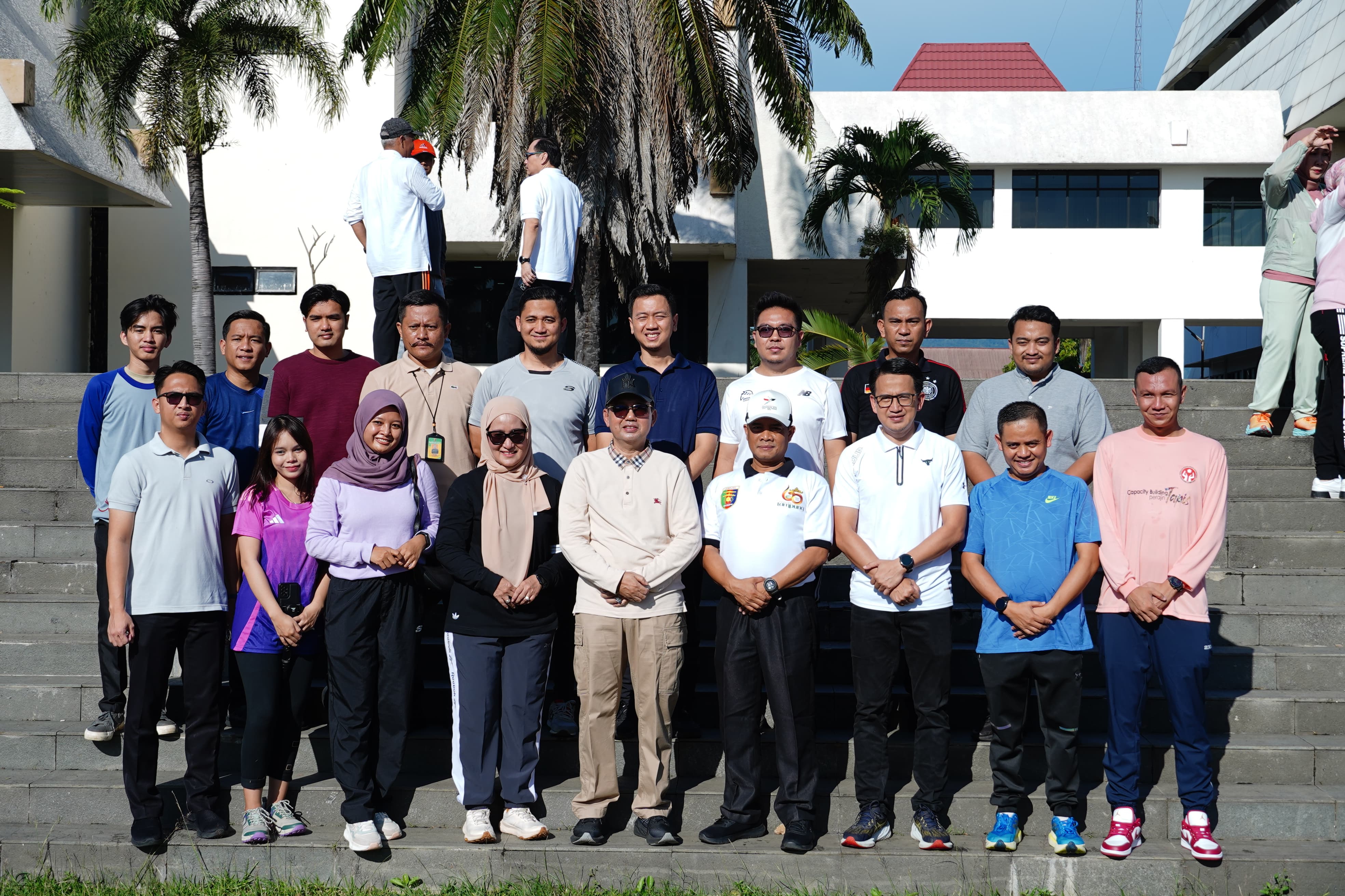 Bandar Lampung — Penjabat (Pj) Sekretaris Daerah Provinsi Lampung, Fredy, didampingi oleh Pj. Ketua Dharma Wanita Persatuan (DWP) Provinsi Lampung, Siti Fatimah Fredy, mengikuti senam bersama yang digelar oleh Pemerintah Provinsi Lampung di Lapangan Korpri, Jumat (28/02/2025).